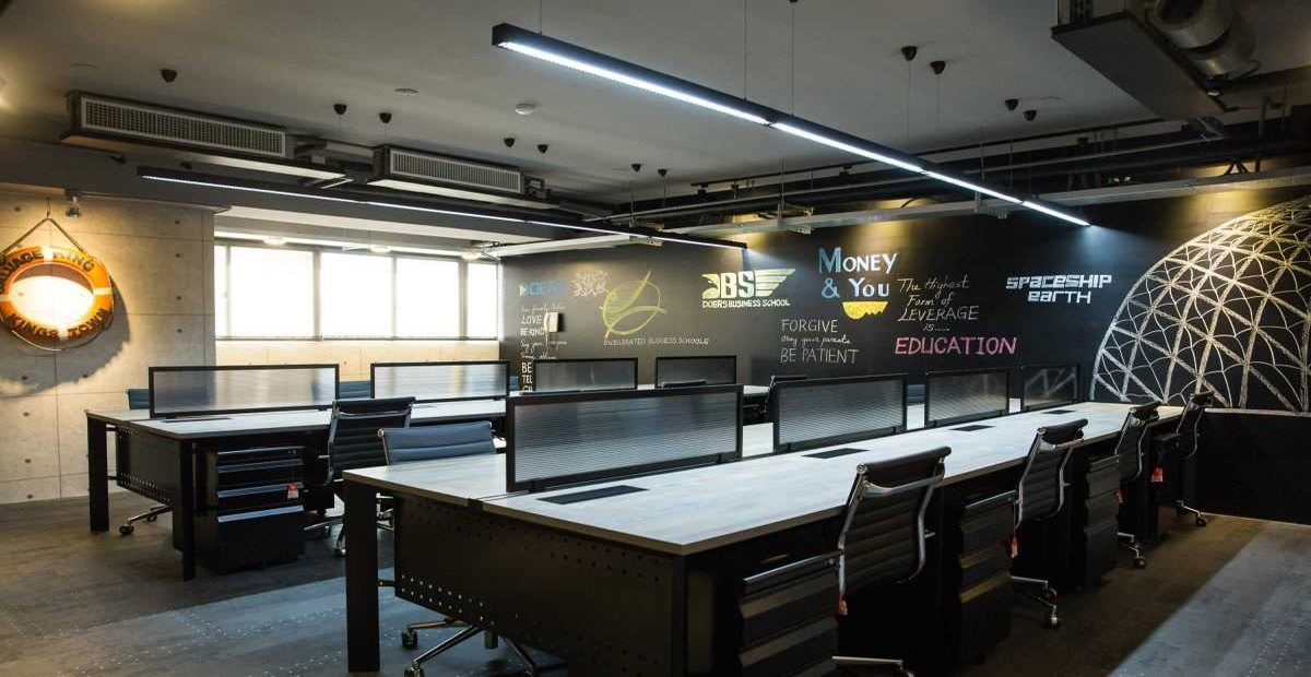 工业风办公室大都以黑白灰为主色彩,营造冷静,理性的质感,墙面桌面都选择灰色水泥色,还有裸露的吊顶让办公室显得更加宽