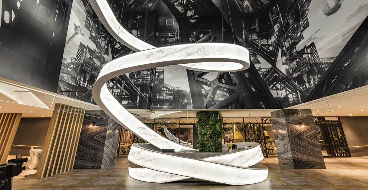 项目地址位于上海,建筑面积500平。进门大厅环形建筑充满科技,容易抓住人的眼球。室内以黑白色作为载体,黑色作为点缀,是整个空间变得活跃有格调。