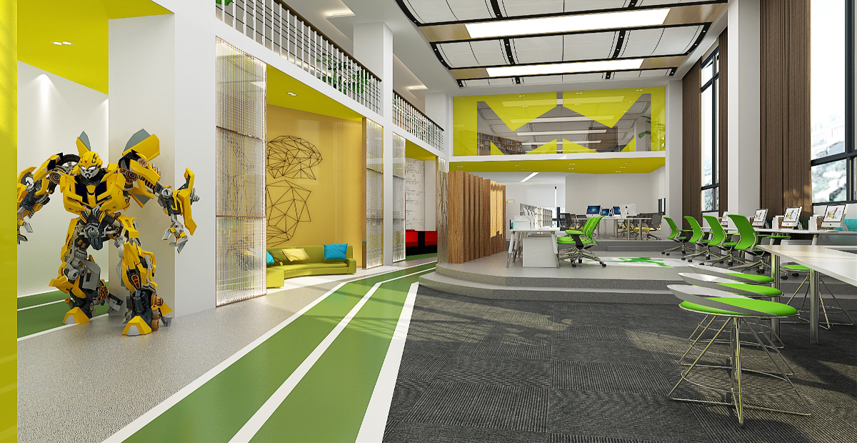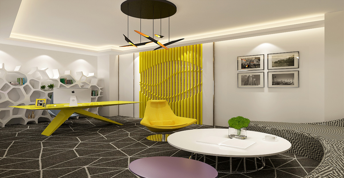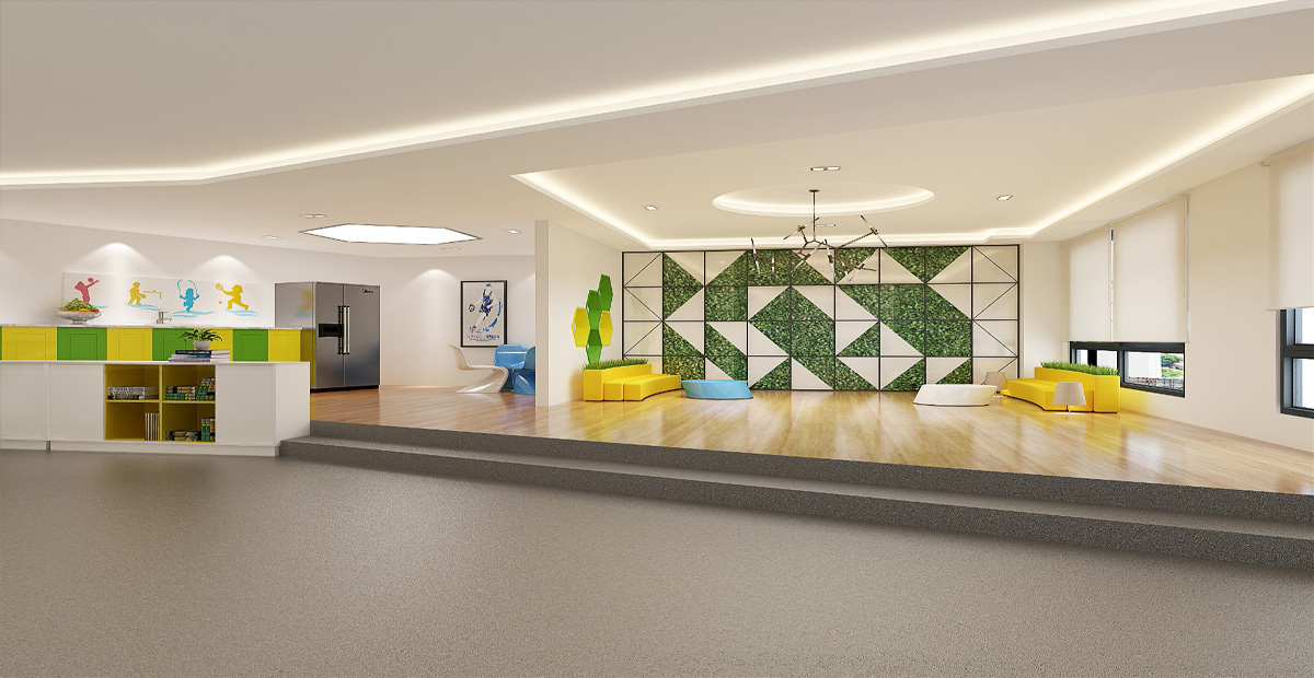 该工程地址位于蔡甸,工程面积400多平。loft的挑高使空间看着大气又有层次,加上黄色的调色,显得空间明亮又活跃。