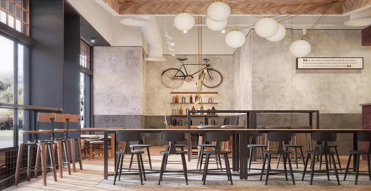 该项目位于深圳福田区,建筑面积80平。水泥墙面是工业风的一种特殊表现,既耐看又不是格调,搭上木质感的桌椅,是整个空间变得柔和起来,最吸引人的无非就是那与地面相互呼应的吊顶,造型看似简单,却相互呼应。