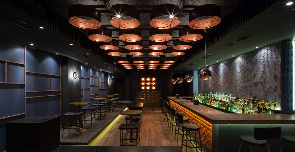 该项目位于上海,建筑面积110平。酒吧空间虽小,但布局的变化让空间显得不那么拥挤。