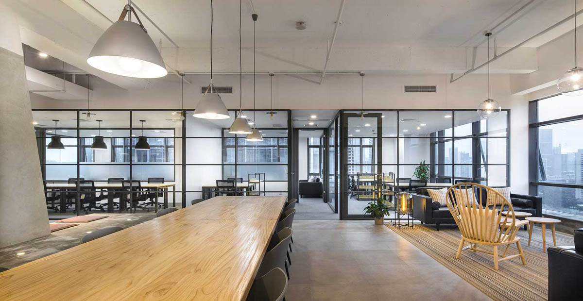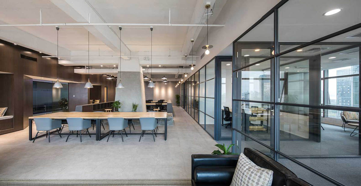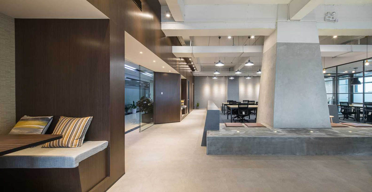 该工程地址位于广东,建筑面积300平。这是一个小尺度的联合办公空间设计,包括7间办公室,12个固定工位,8个自由办公座位,水吧,休闲沙发等。